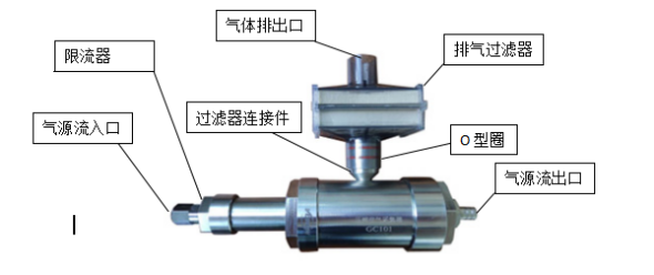 3.1 將O型圈固定在過濾器連接件上,然后將排氣過濾器壓緊。